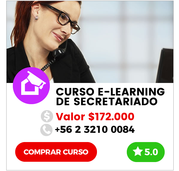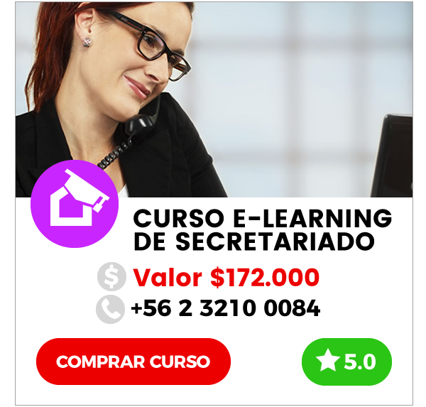 Este curso entrega los conocimientos necesarios para desarrollarse en el área. Curso de Secretariado E-learning es una tremenda oportunidad para obtener los conocimientos necesarios para desenvolverse de la mejor manera en el mundo laboral de una secretaria o asistente comercial Un programa desarrollado pensando en las necesidades actuales del mercado Aprenderas: Atención de público Protocolo Tareas Básicas Herramientas de Gestión Comunicación Oral y Escrita Office Nivel Usuario